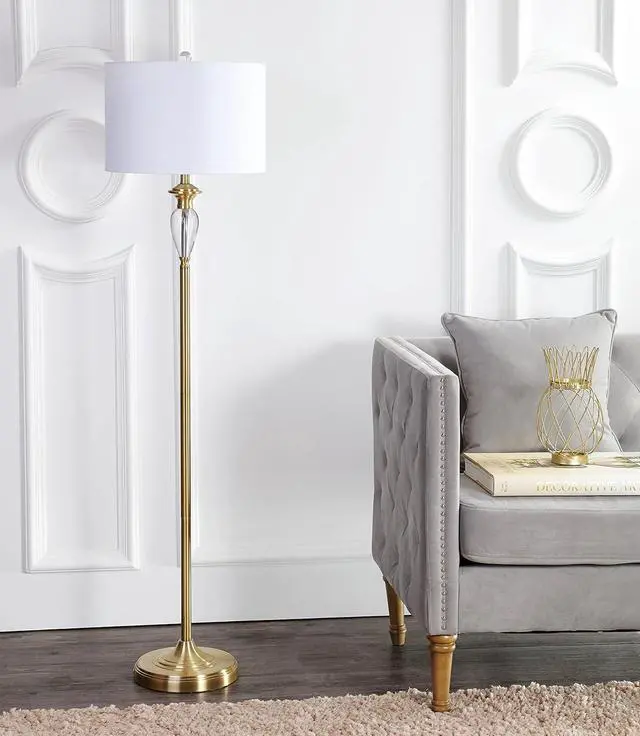 Brass floor lamp with crystal accents in a classic silhouette