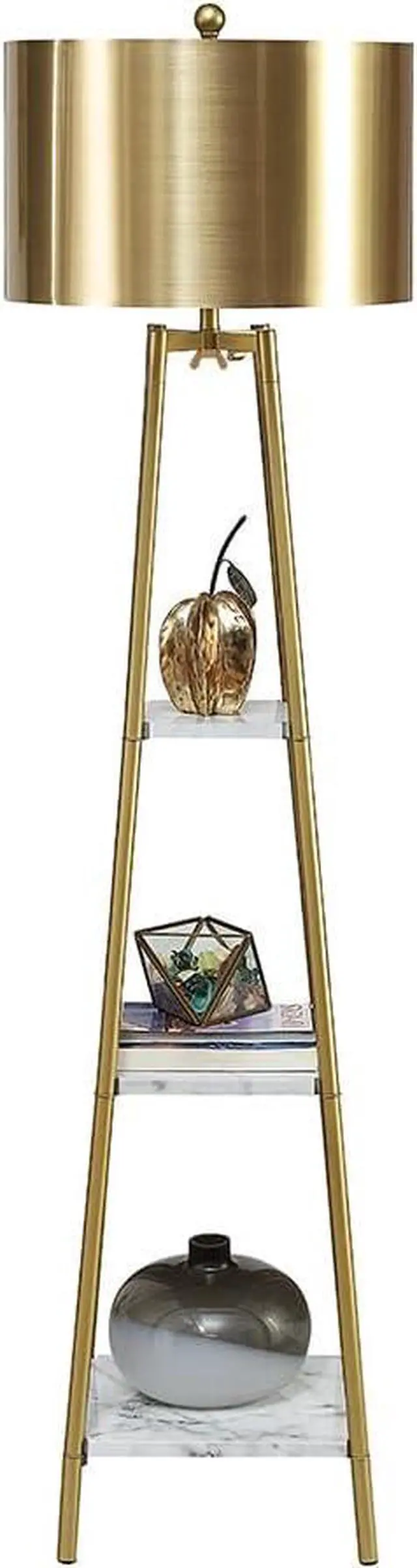 STURDY STRUCTURE: The simple black frame houses three tiers of square walnut color fiberboard shelves match with a fabric shade to complete the practical decorative furniture. The floor Lamp is easy to assemble and the metal frame design is stable enough to ensure safety.