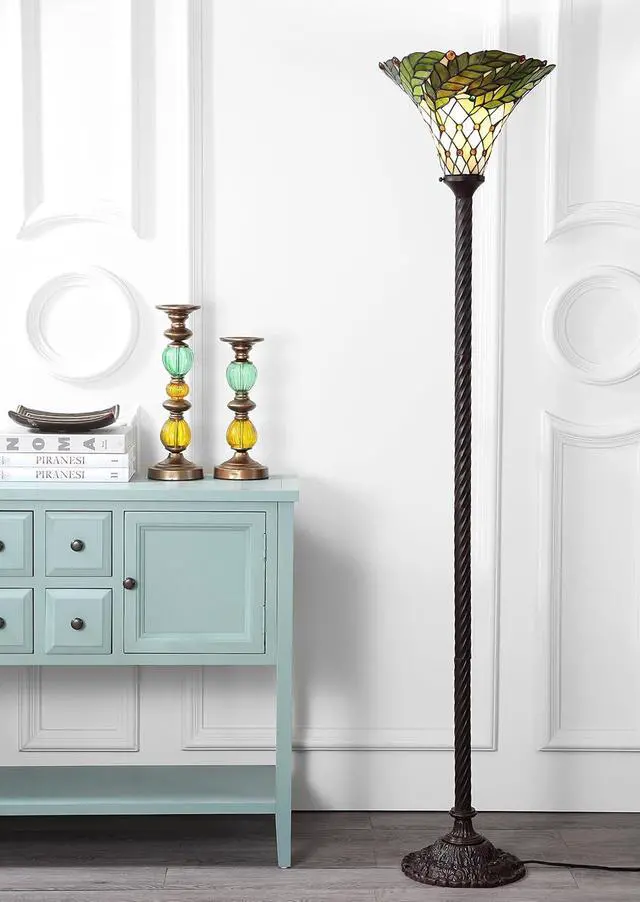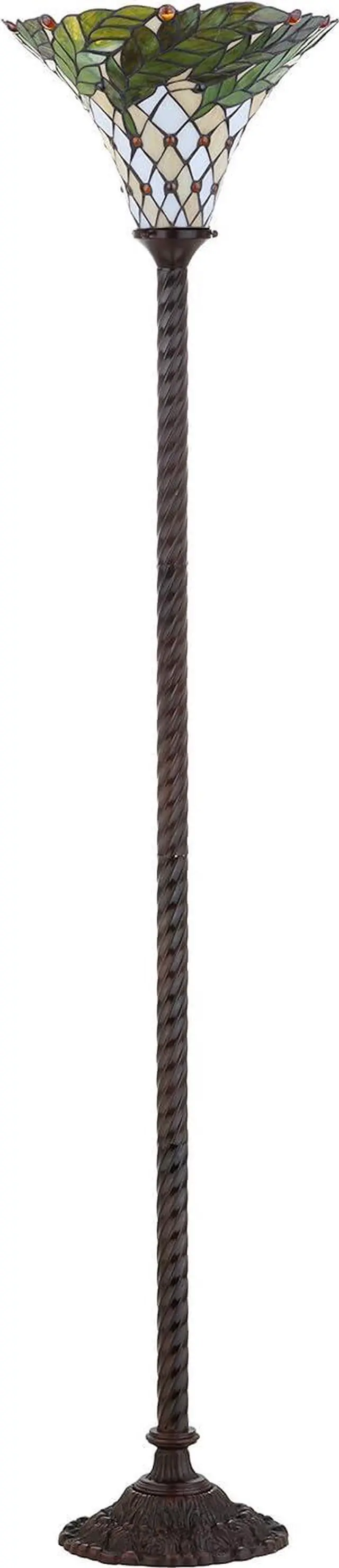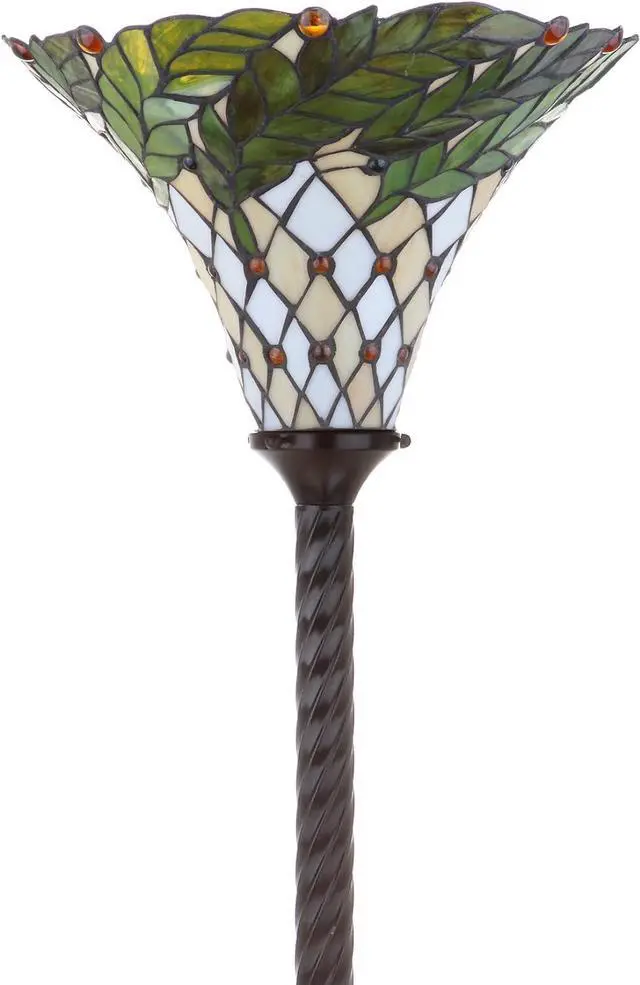 Elegant shade with leaf design in shades of green, ivory, and cream.