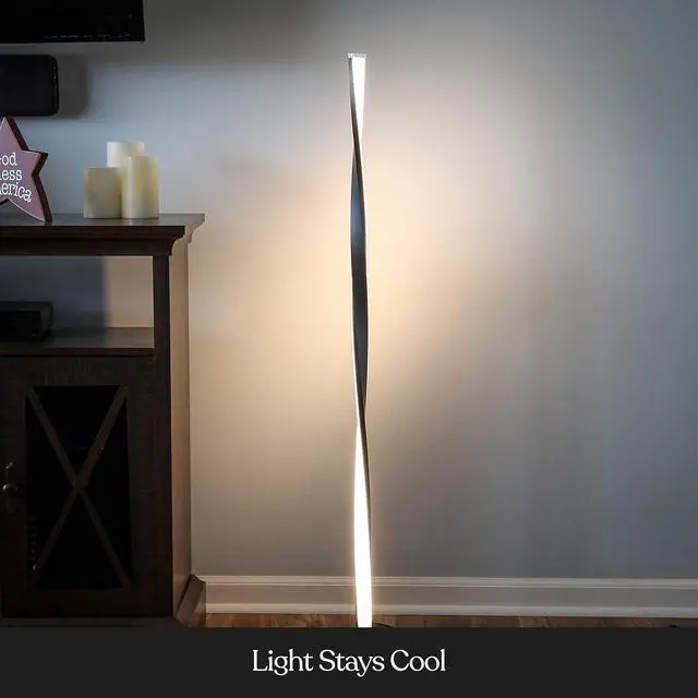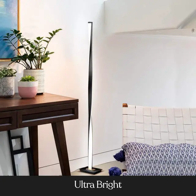 Super Bright LED Lighting: With 1400 lumens of dimmable lighting, this stylish Helix floor lamp excels at both task and mood lighting. This gorgeous lamp is a great source of bright mood light for your bedroom, family room, or living room. The gently twisting fixture stands gracefully at 48" tall.