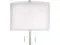 Pre-Assembled ShadesSleek brushed nickel finish base and pole. Metal construction. Double layer linen and sheer fabric drum shade. 7 1/2-foot long silver cord.