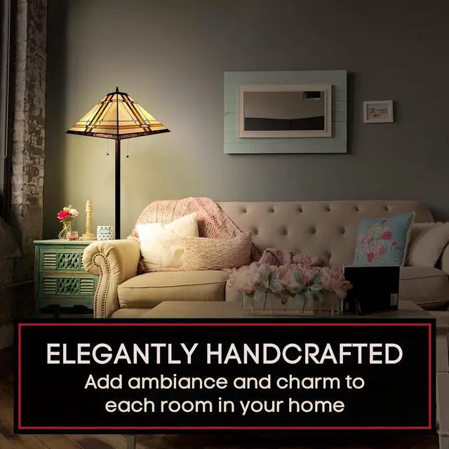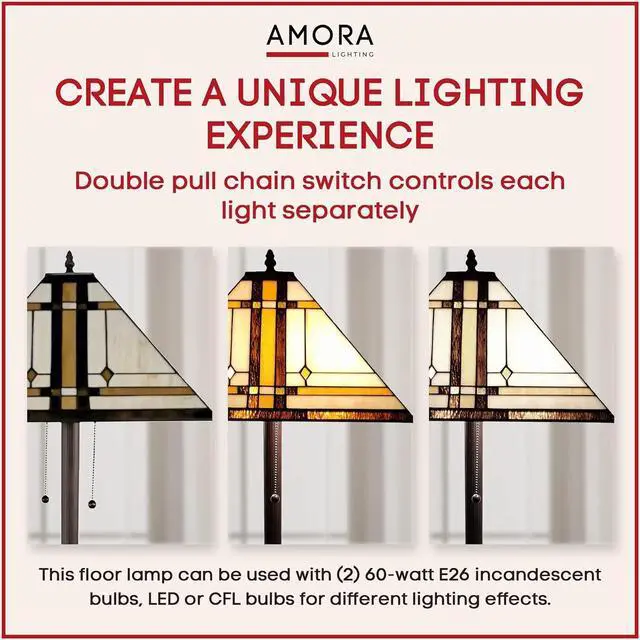 UNIQUE LIGHTING EXPERIENCE -A traditional Tiffany floor lamp designed with two pull chains for controlled brightness; Our floor lamp can be used with different bulb types to create a unique ambiance.