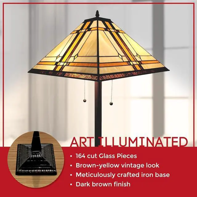 ART ILLUMINATED -Our Amora Tiffany floor lamp is crafted of vibrant glass pieces providing a beautiful shimmering display; Our Tiffany lamp shade reflects warm; brown tones creating a calming effect.