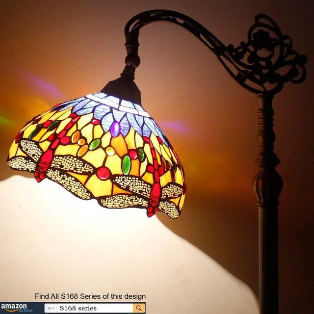 WERFACTORY Tiffany Floor Lamp Orange Blue Stained Glass Dragonfly Arched Lamp 12X18X64 Inch Gooseneck Adjustable Corner Standing Reading Light Decor Bedroom Living Room S168 Series