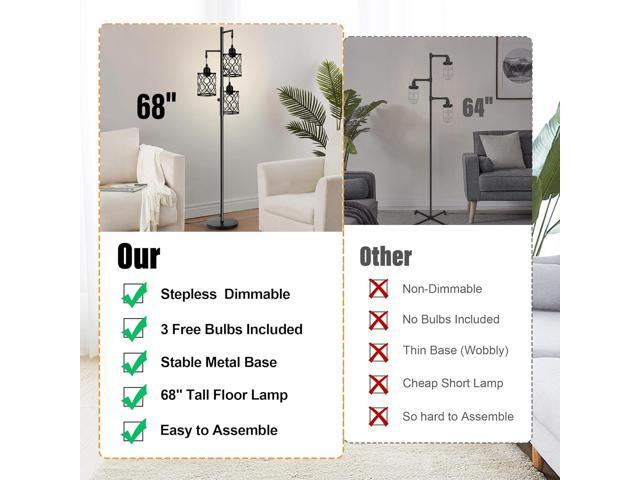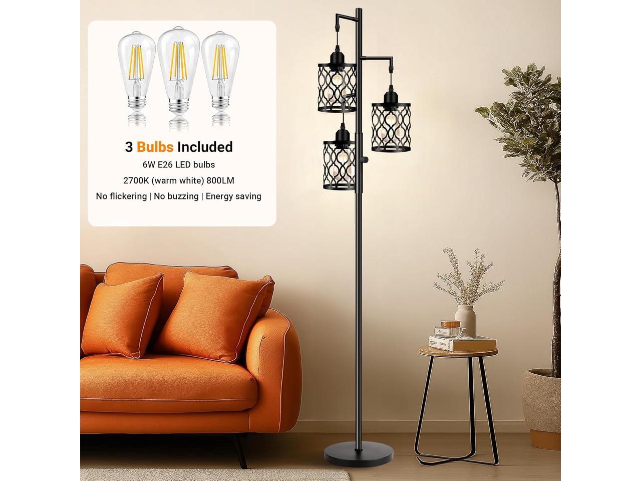 - Dimmable LED bulbs included: for a better user experience, these boho floor lamps provide 3 PCS 6W dimmable LED bulbs. Three bulbs emit 2000LM 2700K warm light in total, only consuming 6W. The premium bulbs are non-flickering, have soft light, and have a longer lifespan