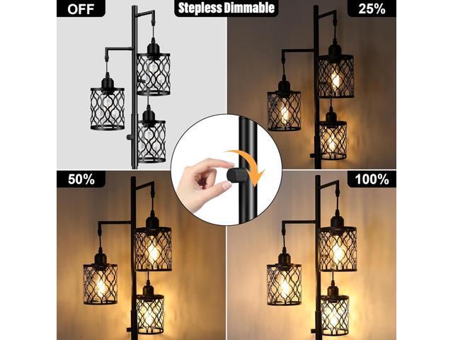 - Stepless dimming floor lamp( 0-100% ): this tall lamp for the living room is updated with a step-less dimmable and rotary switch to control the brightness. Just simply twist it and then you can adjust the stand up lamp in the brightness range of 0 to 100% according to the needs of different scenes.