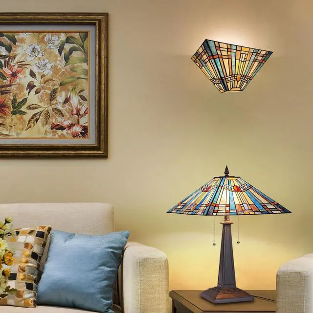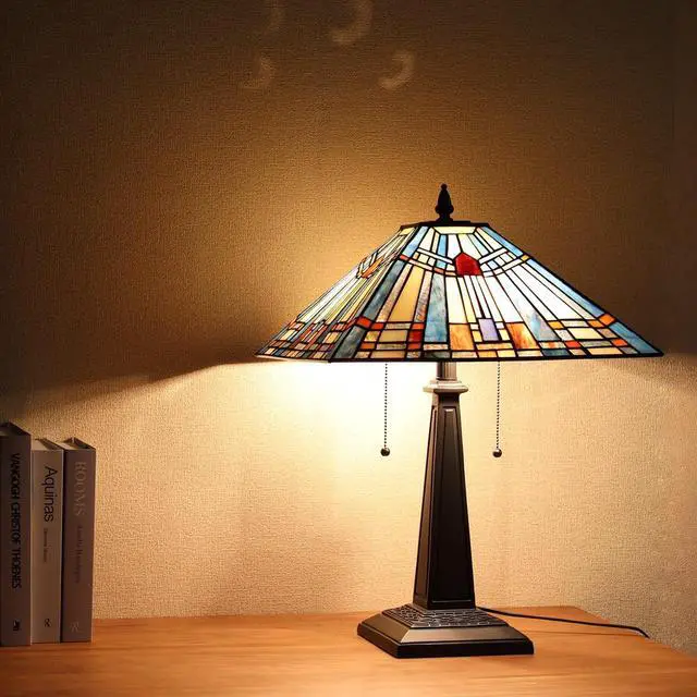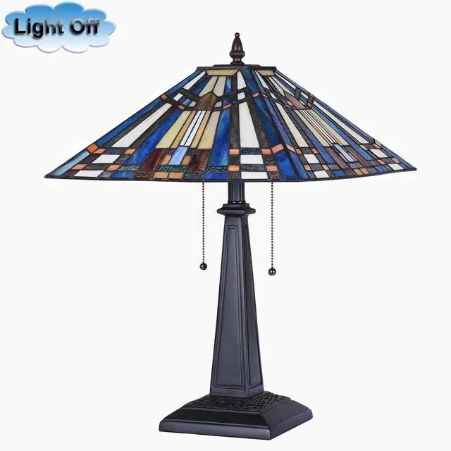 Definitely Eye-Catching Antique Living Room Lamp Mission style blue tiffany lamp shade shines the light through the glass and creates beautiful patterns. All of the colors are vibrant and evenly toned when light on, it gives off a muted and soft light. Absolutely will look stunning in your room and be the focal point of adding a touch of elegance for home and office.