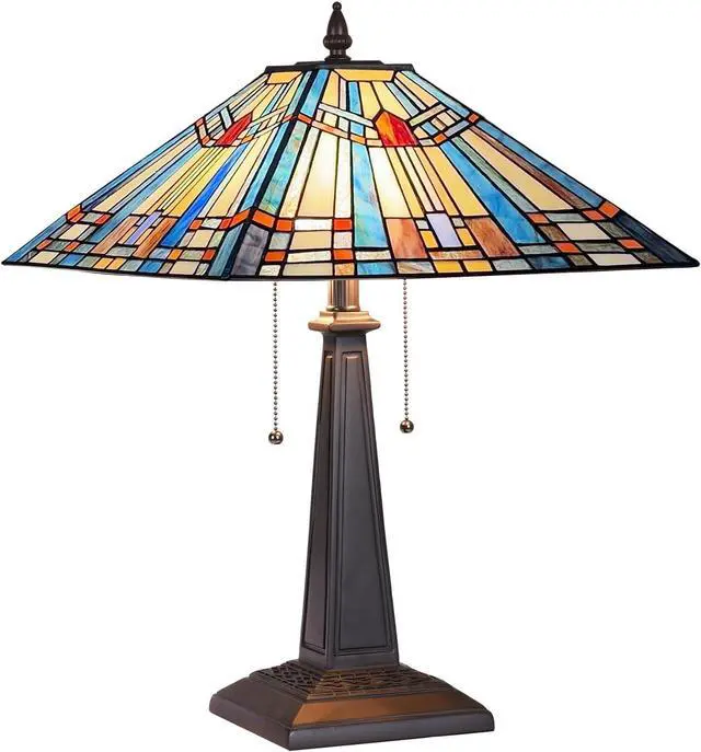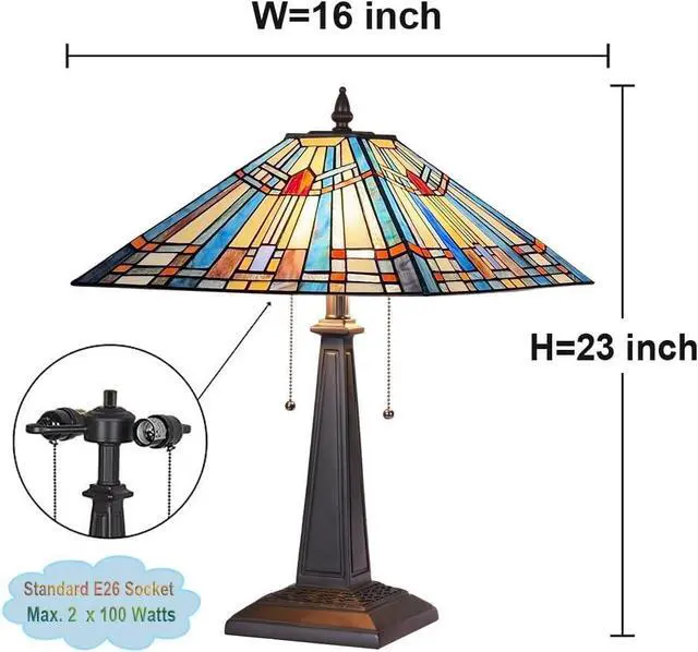 Beautiful and Functional Piece of Decor Cotoss Tiffany Table Lamp in 16 inches Wide by 23 inches Tall, it comes with 71 long chain, ON/OFF pull chain switch. A stained glass table lamp consists of a tiffany glass lamp shade and a resin construction base in blackish bronze finishing. Tiffany lamp is one of the best example of arts and crafts decor ever produced, the ornate accessories add a sense of character and history to an otherwise modern setting.