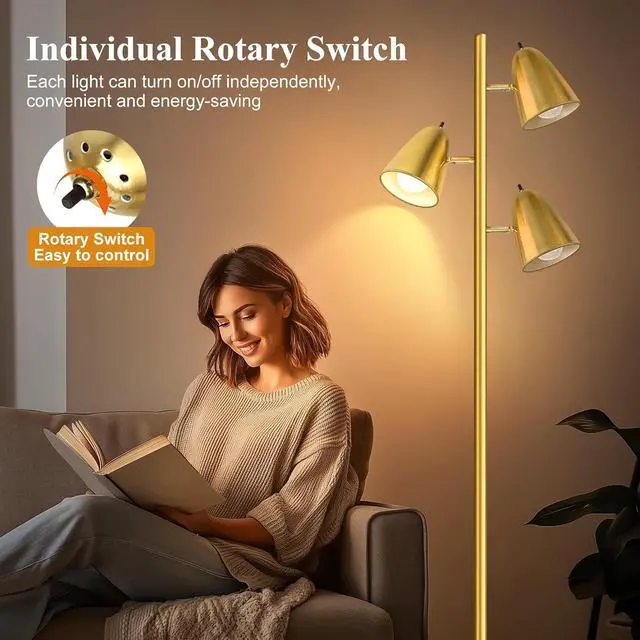 3 separate rotate switches: our standing lamp is convenient to use. Considering the usage habit of daily life, we put a separate rotate switch on each top of the lampshade, you could turn on/off the single light you need, you get the brightest if turn on 3 lights.