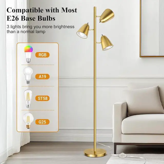 Supply 3 free LED bulbs: these floor lamps come with three LED light bulbs, saving you the time and cost of looking for bulbs again. Soft 3000K warm lighting without flickering and noise, and save more energy cost. You can also choose other suitable E26 bulbs.