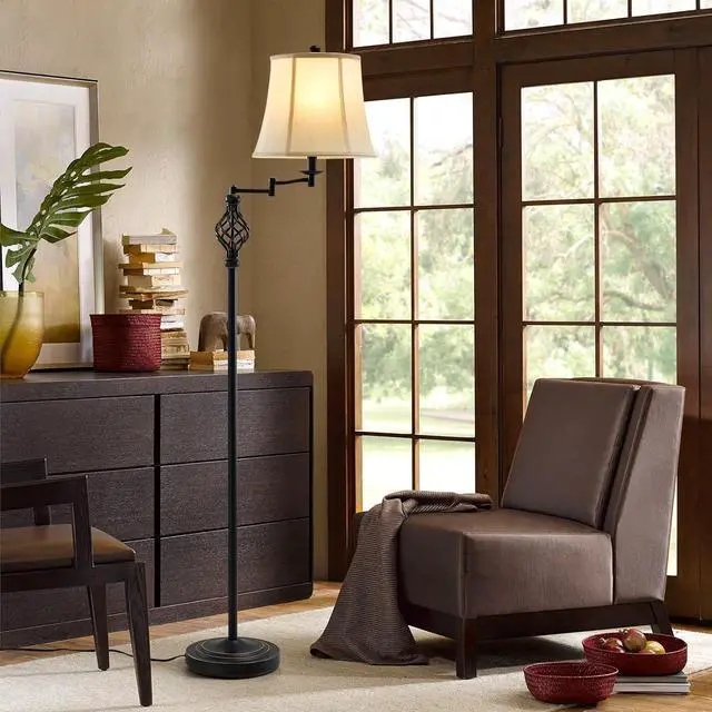 Swing Arm Floor Lamp: Traditional floor lamp extending arm allows you to adjust how far out the light extends, which makes it perfect if you want to place it over a chair or bed, or behind the sofa
