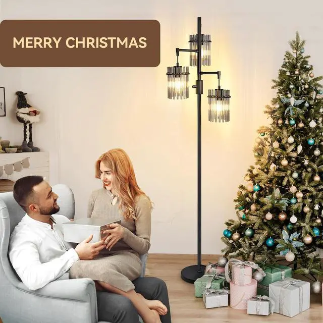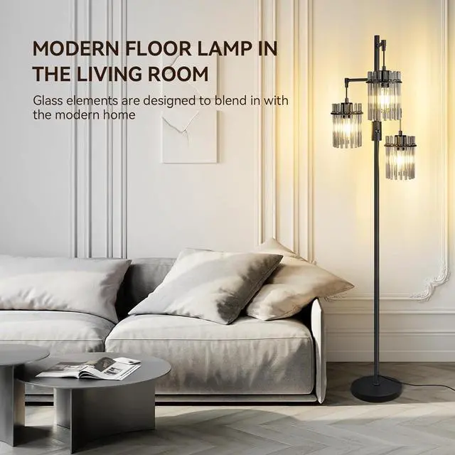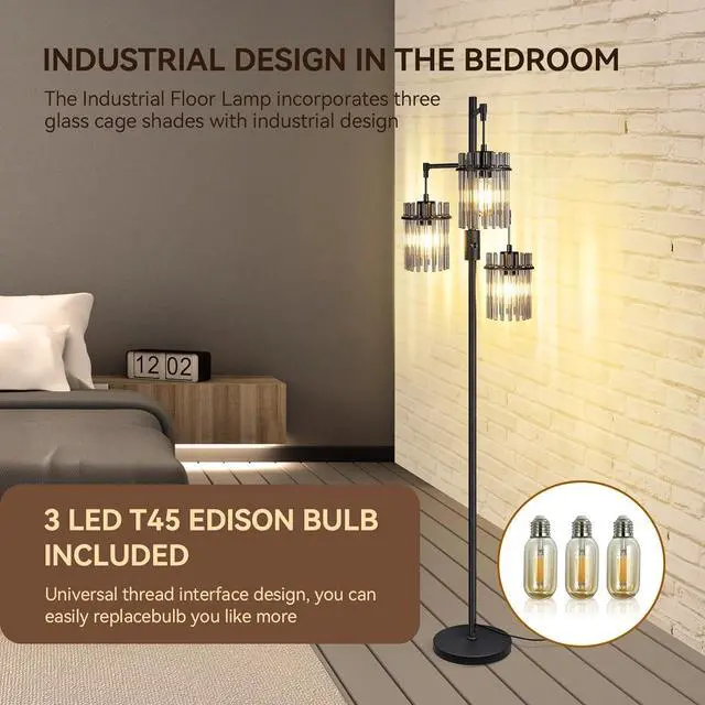 Retro Industrial Style Home Decoration: Farmhouse floor lamp combines three glass cage lampshades with a black metal lamp pole, showcasing a minimalist and modern charm, seamless paired with any decoration, presenting a vintage color effect. Rustic floor lamp can provides an elegant and warm ambiance, is perfect lamp for your family and friends