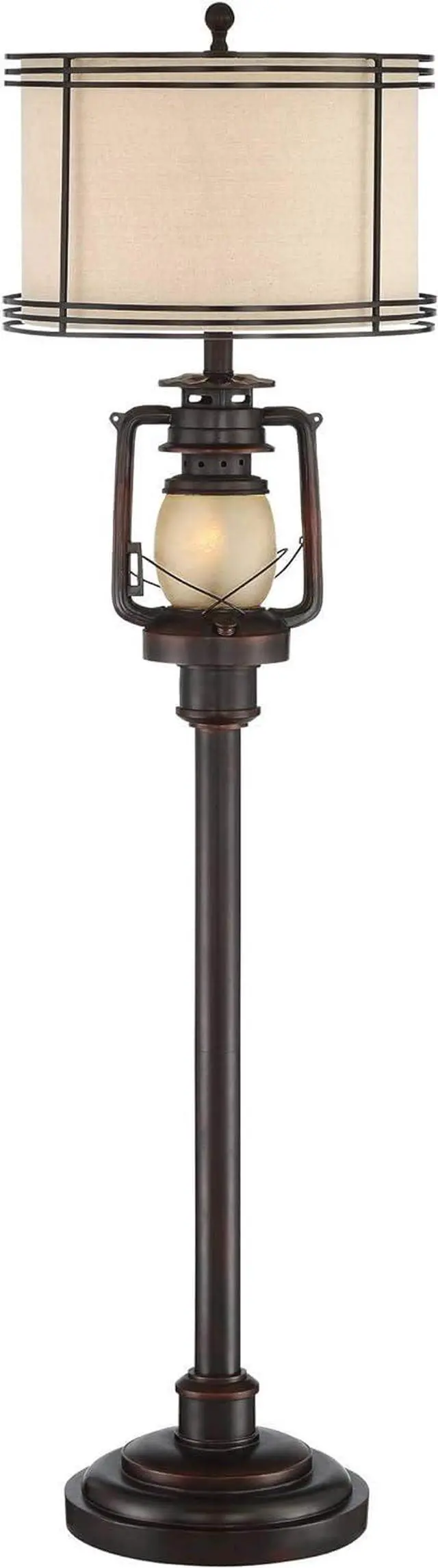 Versatile Western StyleThis unique floor lamp offers both style and practicality, making it a great floor lamp for the living room or family room. The brown color and beige shade of this lantern floor lamp add a decorative touch to any room. Perfect as a tall lamp for a living room corner, it provides warm bright light for your favorite reading or relaxing spot.