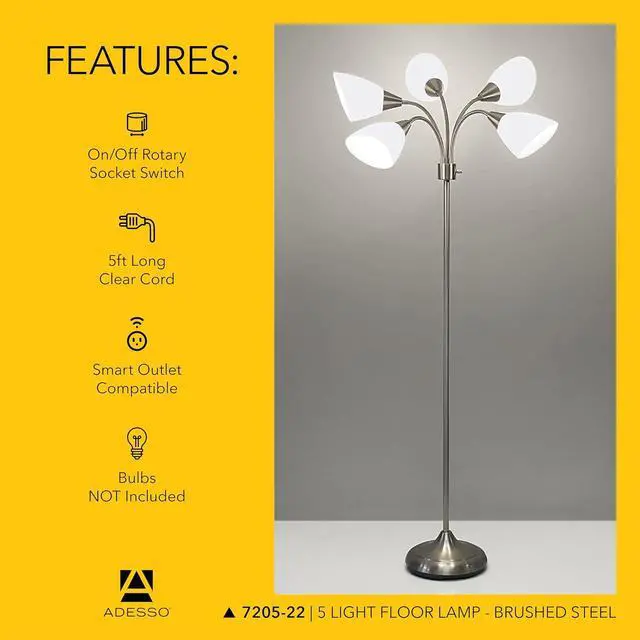 Dimmable Mood Lighting The rotary switch lets you choose between lighting 2, 3, or all 5 bulbs. Whether you need bright light for focused tasks or a softer glow ambiance for living room lighting, this dimmable floor lamp adapts to your needs.