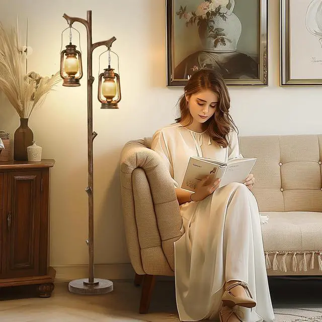 Foot Stepless Dimming (0-100%): This rustic floor lamp provides 0-100% full stepless dimming, with soft and bright light, creating the atmosphere of a rustic wooden house. Easy to operate without bending over.
