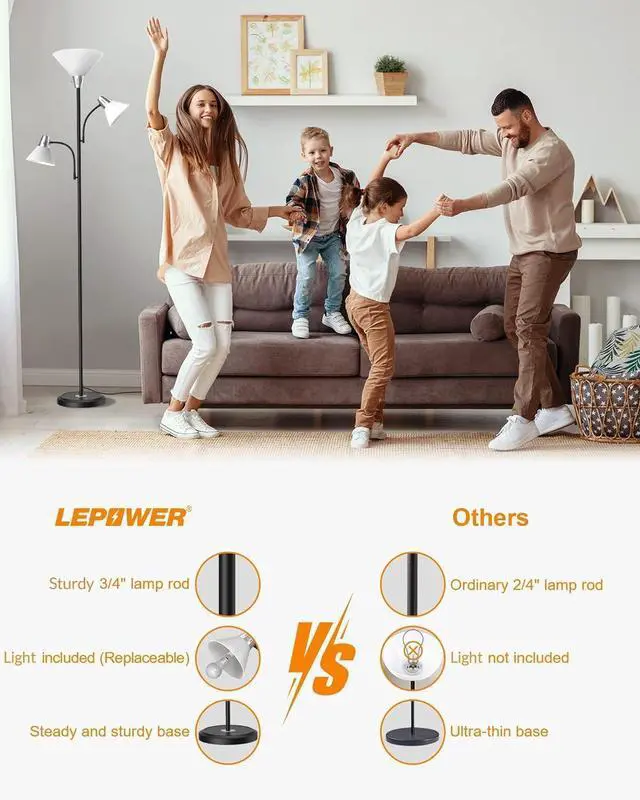 Frosted Lampshade: Floor lamps for living room is not prone to breakage, and has great light transmission. The floor lamp for bedroom doesn' t take up much space, but can illuminate a large room. LEPOWER lampshade is soft textured and very sturdy