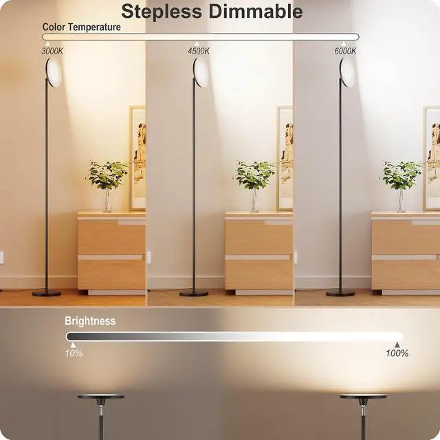 Bright dimmable led floor lamp: This floor lamp uses advanced led lighting technology, led has a long life and power saving characteristics, the correct use of led life up to 30, 000 hours, you can save a lot of money.