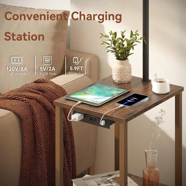 End Table with Charging Station: This table lamp is built with 2 USB ports (5V/2A), 1 AC charging port (120V/8A), and a 5.9 ft power cord. It provides a convenient charging spot for mobile phones, laptops, earphones, watches, and other electronic devices, all of which are easily accessible at your fingertips. As a practical piece of furniture for living rooms and family spaces, it lets you enjoy cozy ambiance while keeping devices powered up.