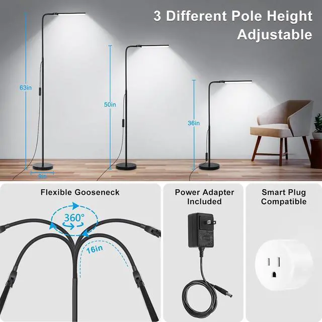 Flexible Gooseneck & Smart Device Compatible: The esthetician light features a 360-degree adjustable and durable gooseneck, allowing you to effortlessly rotate and bend it into various angles. With the latest upgrades, this tall lamp works with smart outlets, enabling you to illuminate any corner as per your preference and providing convenient on/off control.