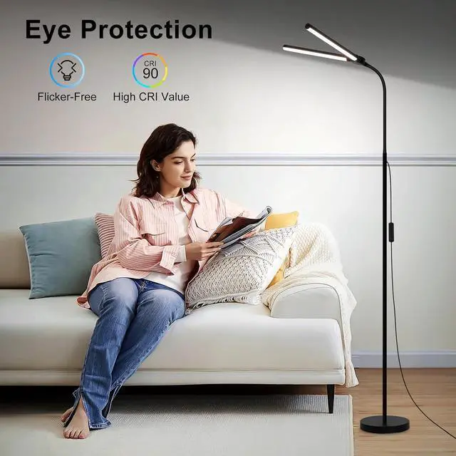 Super Bright Led Lamp: The 18W/2000lm modern floor lamp is equipped with 160pcs high-brightness LED light beads, ensuring a brighter and wider luminous area. The LEDs has an impressive service life of over 50, 000 hours, eliminating the need for any bulb replacements. The floor lamps for living room not only offer ample brightness but also prioritizes eye protection, ensuring a comfortable and safe lighting experience.