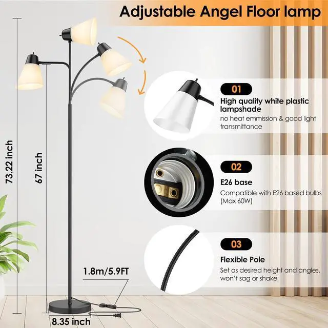 Rotary Switch & Compatible with Smart Devices: The standing lamp is controlled by a rotary switch on the lamp head, choose an E26 base bulb (60 MAX), turn the rotary switch clockwise to easily turn the light on and off. Our corner light is also compatible with smart plugs (not included) and smart bulbs (E26 base bulb), then controlled it by your phone; intelligent design help you enjoy easier life and home automation.