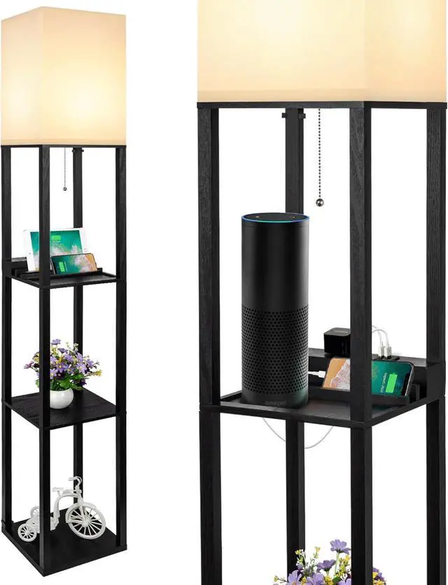 Cuboid Shelf Floor Lamp: With a TC lamp shade and a wood grain appearance, the 3-in-1 3-tiered cuboid 63inch height shelf floor lamp has a simple and elegant appearance which is suitable for any decoration style such as modern, contemporary, rural style and so on. Pulling chain on/off easily to control the light on and off. Customized clips can easily secure the wire to the pole of the lamp to reduce the redundancy of the wire and increase the beauty.