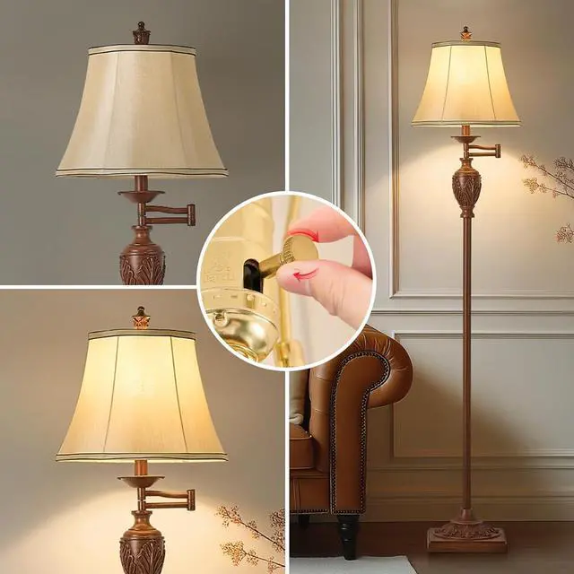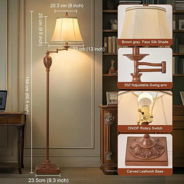 PORTABLE & 350° ADJUSTABLE SWING ARM The brown floor light is 60.5 Inches Tall, which is the Ideal Height for Providing a Gentle Glow. It' s simple to move the lamp to where it' s required. Its extending arm enables you to change the length of the lightNo third level dimming