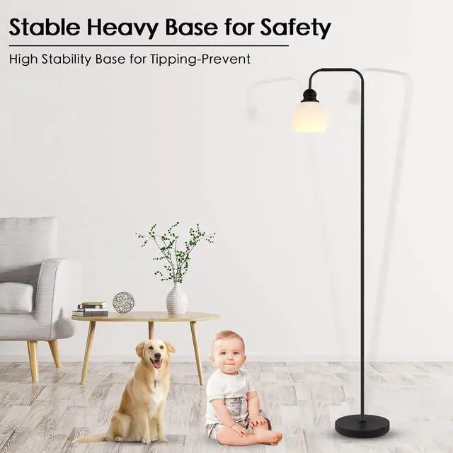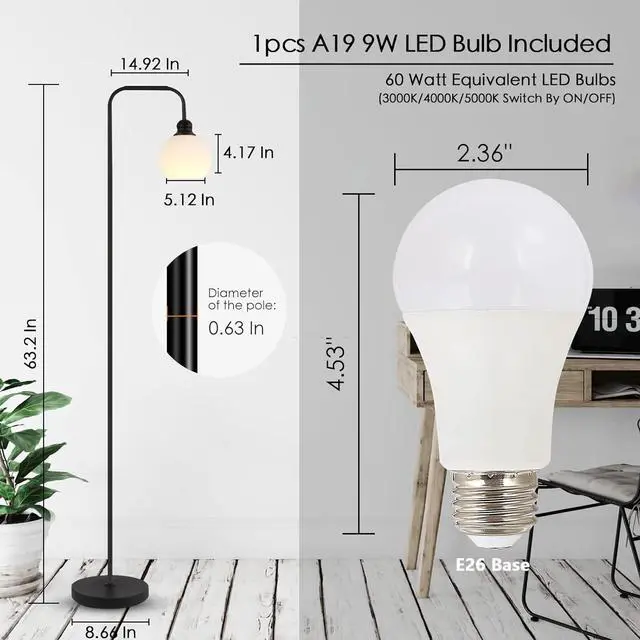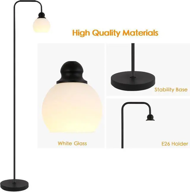 Gorgeous Glass Decorate: The LED floor Lamp is 63.2 inches high, with hanging White globe glass shade(D 5.12 In). Fashion industrial design and good light distribution can better protect your eyes. the floor lighting create a warm and gorgeous feeling for your home by 3000K warm white light, choose 4000K for dinner with friends, and 5000K is good for focusing on reading or working time.