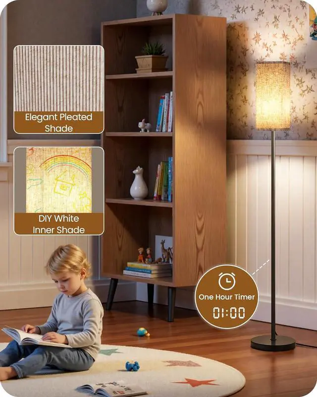 Elegant Pleated Design with DIY Shade: The floor lamp features a double-layer shade that casts beautiful light and is easily removable for cleaning. The pure white inner shade liner allows for DIY painting, enabling you to create a unique and personalized lamp