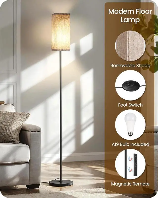 Modern Corner Floor Lamp: Features a space-saving design ideal for corners. The entire lamp is ETL certified, meeting rigorous safety standards for your peace of mind. Enjoy convenience and soft illumination with simple setup