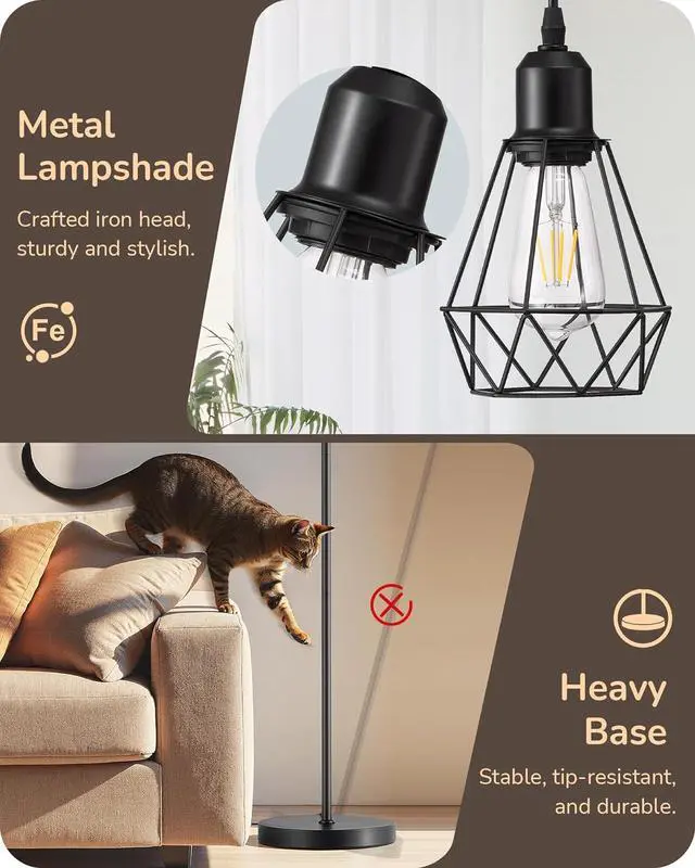 [Sturdy & Stable] Built from high-quality metal material with weighted base and reinforced structure, this tall floor lamp stays firmly in place, resists tipping, and offers reliable performance for years to come