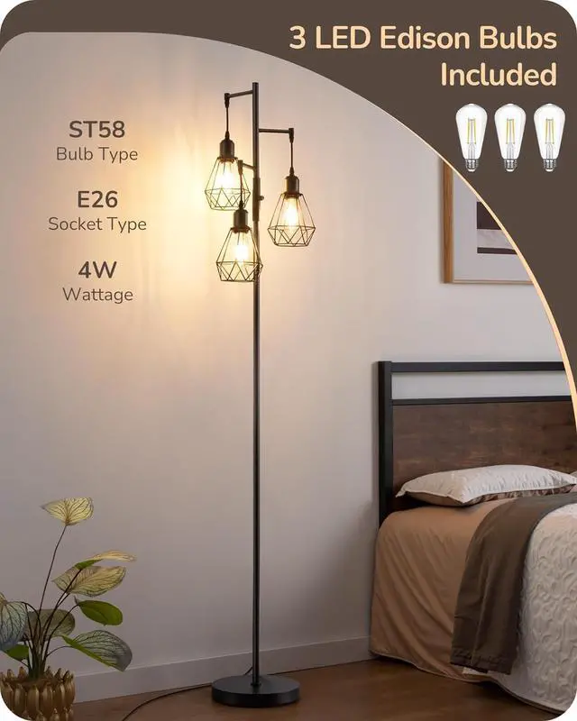 [Energy-Saving & Bulb Included] This tree floor lamp comes with 3 high-efficiency LED bulbs that provide bright, adjustable lighting while using minimal electricity, helping you lower energy bills and enjoy long-lasting, eco-friendly illumination