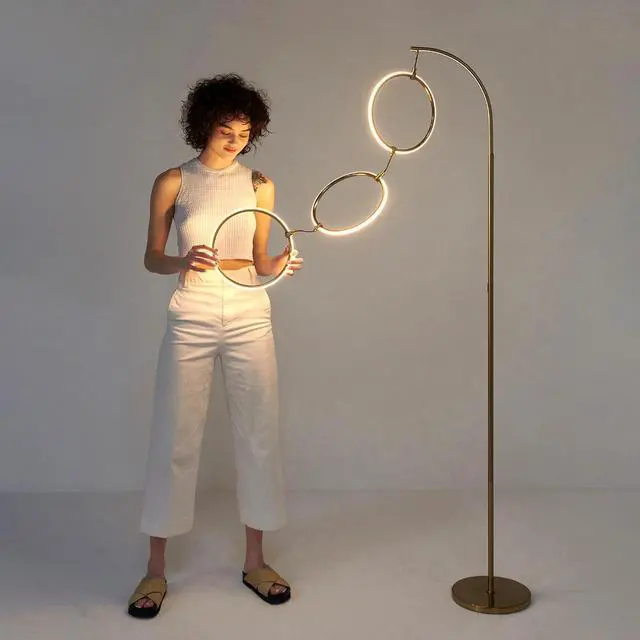 Long-Lasting and Energy-Saving Floor Lamp: This Brightech LED floor lamp includes a built-in hanging circular LED three ring fixture, with 30 watts of warm-white LEDs that can burn for up to 20, 000 hours - or 20 years at 3 hours per day. Our LED floor lamps can save you 90% on your electric bill in comparison to incandescent or halogen bulbs, and to top it all off they remain cool to the touch, making them a conveniently safer option as well.