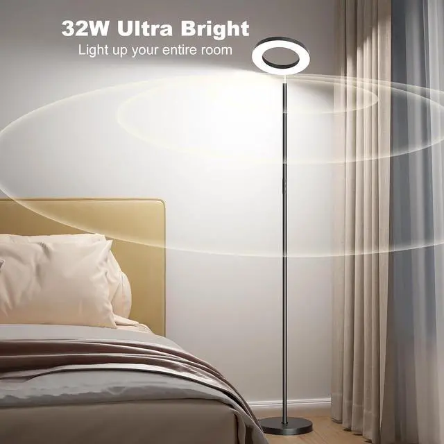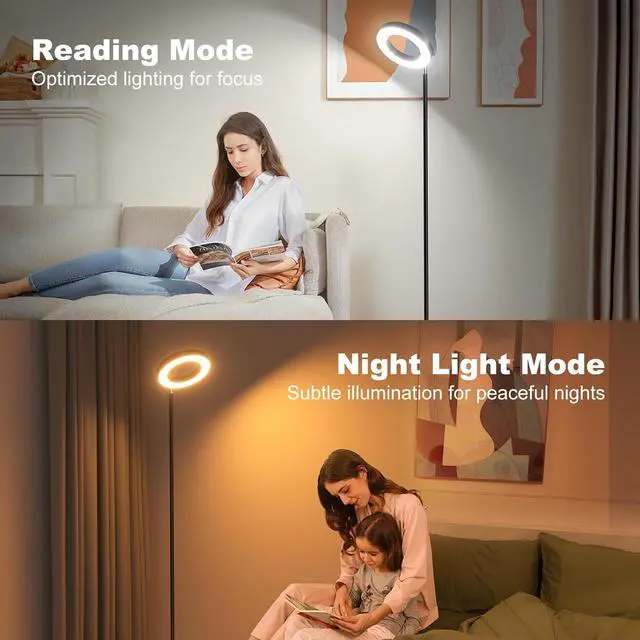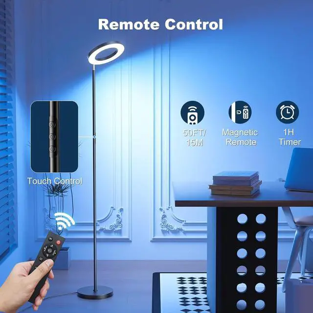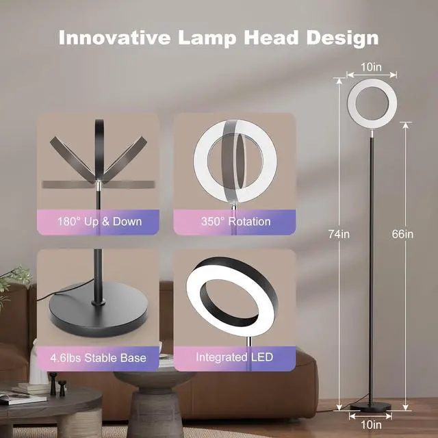 Modern Design: This RGB floor lamp features a unique ring-shaped design that adds a modern and stylish element to the overall appearance; It will blend perfectly with your furniture and easily match the living room, bedroom, office, study, or dining decor