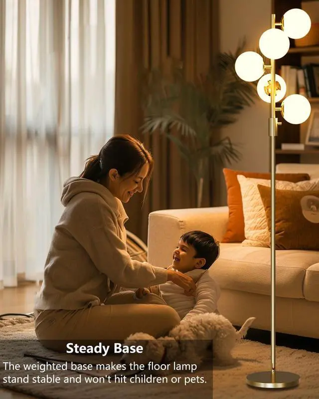 Ultra-Stable & Child/Pet-Safe Design Our globe floor lamp designed of 60 tall metal pole with a weighted base prevents tipping, while heat-resistant materials ensure safety. Perfect for homes with active kids or petsno sharp edges or overheating risks.