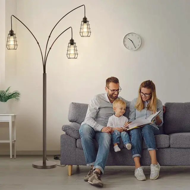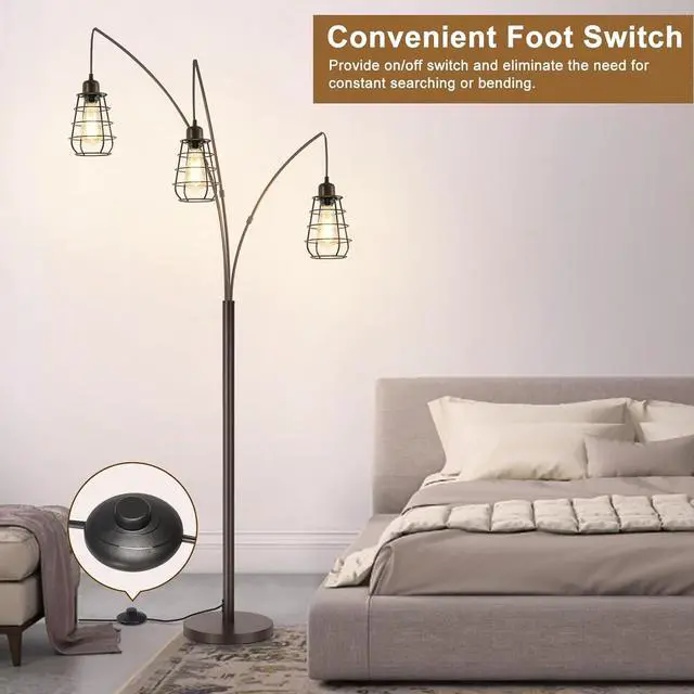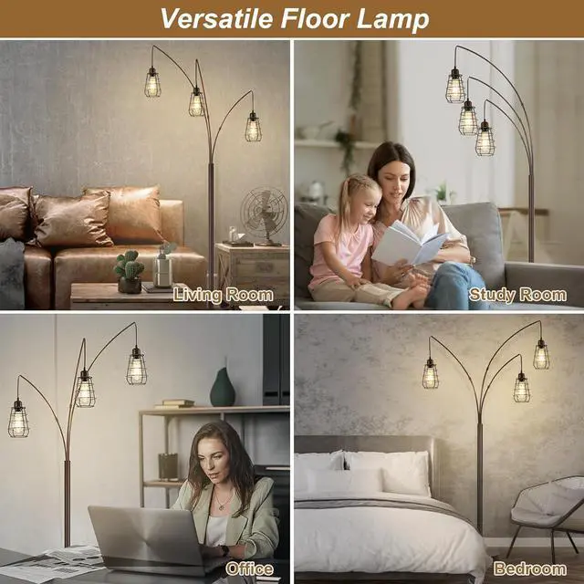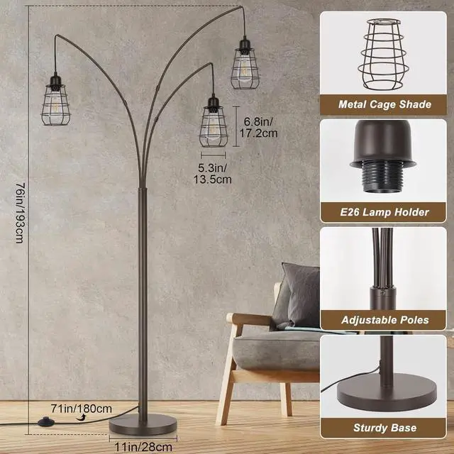 Arc Floor Lamp: Designed in a captivating oil-rubbed bronze finish, this farmhouse floor lamp will adorn your home with its tree-like arms and metal cages. Compared with traditional lamp shades, the cage ones offer a wider range of illumination for living room, even a dark corner. And hollow-out shades wouldn' t block your view anywhere while adding a unique flavor to the rooms of multiple styles.