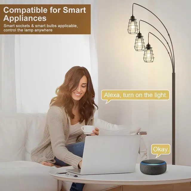 Smart Appliances Compatible: Boncoos arched floor lamp can integrate with smart outlets, which can work with smart home assistants like Alexa, Apple Home Kit and Google Assistant (Smart plug not included). The standing light is compatible with a variety of E26 base bulbs, such as LED, CFL, incandescent and halogen bulbs etc. Incandescent bulbs under 60W or LED bulbs under 9W are greatly recommended.
