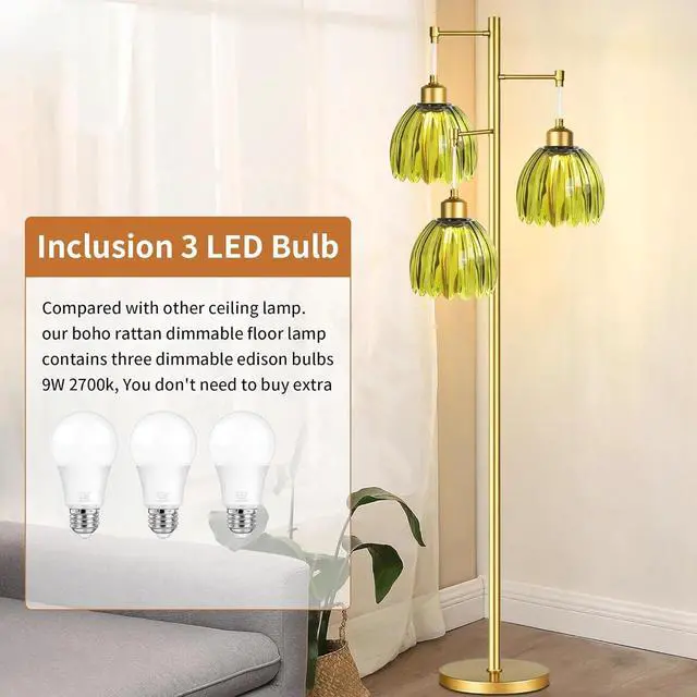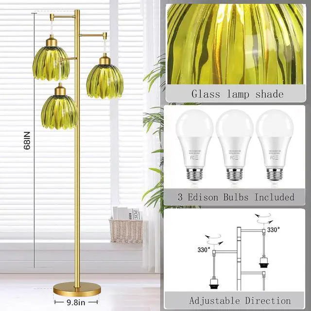 Included Bulb Flower floor lamp for living room contains three led bulbs, You do not need to buy additional bulbs, and tree floor pole lamp have a heavy metal base, is designed to keep you and your family safe at home