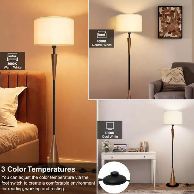 3 color temperatures 3000K-4000K-6000K-Floor lamp create your perfect ambiance with the adjustable LED bulb offering 3 color temperature options, allowing you to effortlessly switch between warm, cool, and neutral light settings to suit your mood and preferences