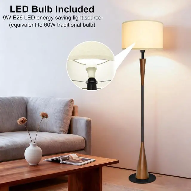 LED Bulb Includedstanding lamps for living room includes a 9W LED bulb with E26 base. The bright living room lamp provides energy-efficient and long-lasting lighting. This tall lamp is not only Ideal for living room lighting, but also suitable as an office floor lamp, perfect for reading or working.