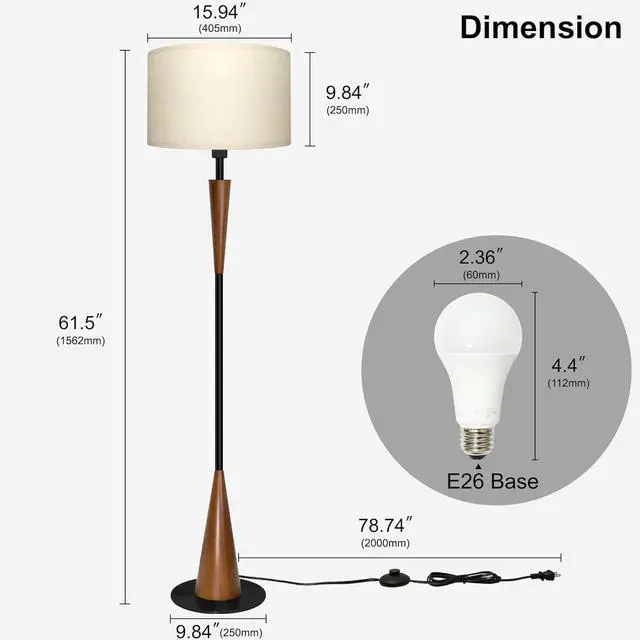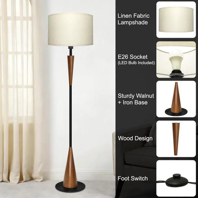 Mid-Century Modern Design- Crafted to complement any mid-century modern decor, the 61.4 " tall floor lamp features a compact linen shade that diffuses warm, eye-friendly light. The cool floor lamp creates a cozy ambiance for living room corners, bedrooms, or offices.