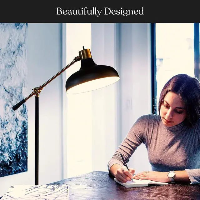 Fully Adjustable Reading Lamp: Use the Brightech Wyatt standing lamp near a table, armchair, or couch for knitting, reading, jigsaw puzzles, cross-stitch, or other crafts and hobbies. Move the floor lamp height down from 57 to 42 by quickly adjusting the arm. The tall lamp has a total reach of about 1.5 feet from the pole. The adjustment nature of the standing lamp makes it the ideal choice for a living room, office, or den.