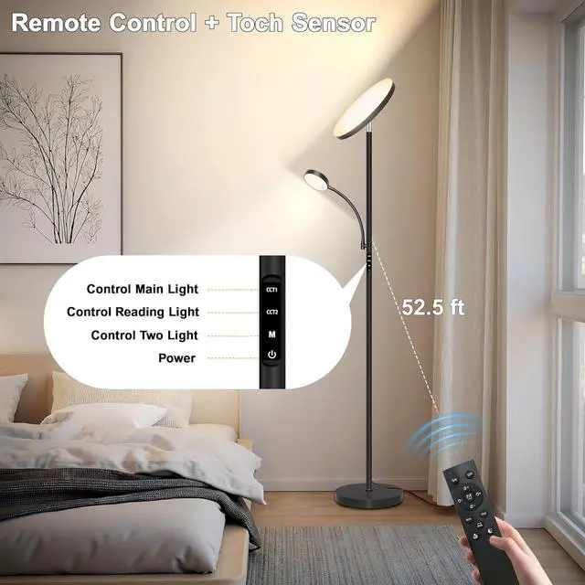 Remote & Touch Control Function: This black floor lamp has a dual-convenience design with both remote and touch control. The remote works from up to 52.5 feet away, so you can easily adjust the standing lamps settings whether youre upstairs or downstairs. Aulaiyi floor lamp also has a handy magnetic designjust attach it to the lamp pole when youre done, so it stores conveniently without taking up extra space. Whats even more thoughtful is the backup dual-control feature: if the remotes battery dies, you can still control the lamp right away with the touch switch, making daily use reliable.