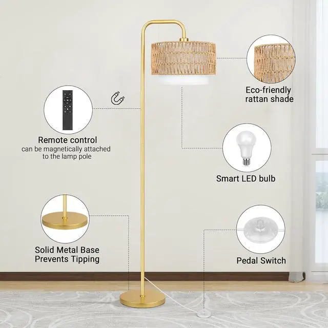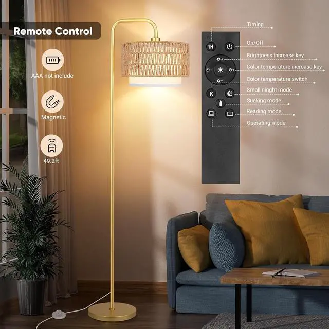 Pedal Foot Switch & Remote Compatible: Farmhouse floor lamp is controlled by pedal foot switch and 6 feet power cord, it allows your foot to tap it on/off and long power cord support to place the boho floor lamp to the suitable position. To keep pace with smart lifestyles, this living room lamp is also come with remote control (AAA batteries not included) to change color temperature and diversified lighting modes. Enjoy a more intelligent experience in life, also a great choice for warm gifts!
