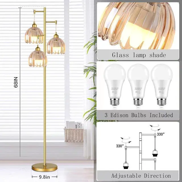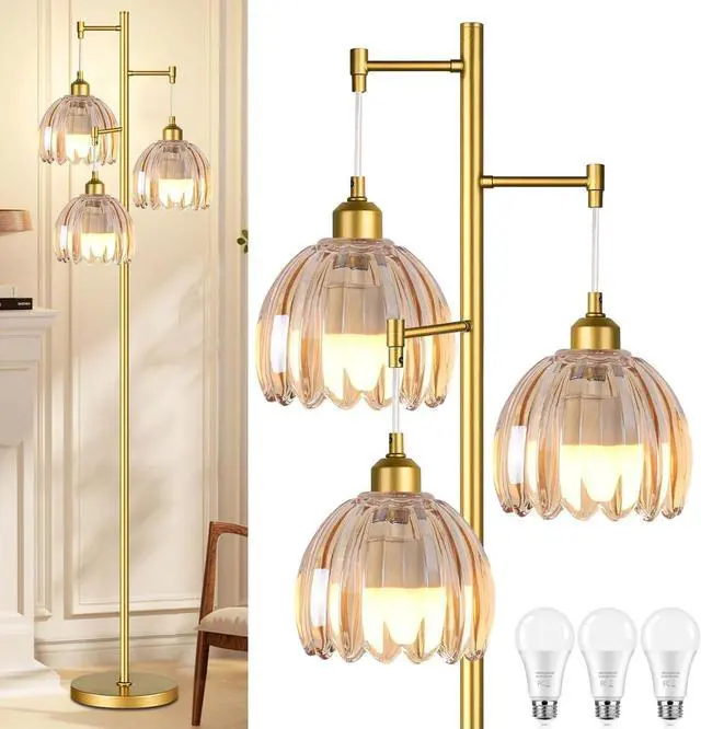 Included Bulb Flower floor lamp for living room contains three led bulbs, You do not need to buy additional bulbs, and tree floor pole lamp have a heavy metal base, is designed to keep you and your family safe at home
