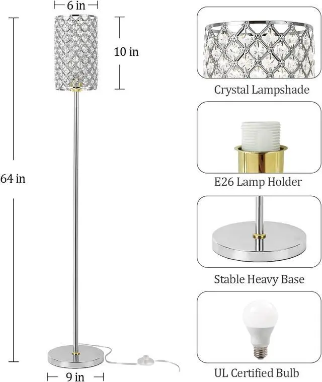 Stylish & Elegant Crystal Lamp- The crystal floor lamp consists of shiny K9 crystal beads that emit a soft, warm glow, reflecting light from all directions. Stunning shape and atmosphere to enhance your home and living space.