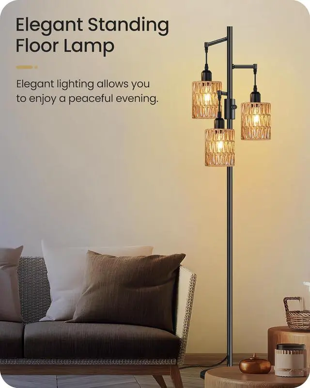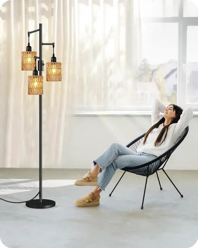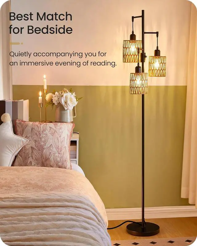 Farmhouse Style: This floor lamp is tall and firm, resembling a wheat stalk standing in a field. Three golden lampshades, woven with rope, hang gracefully like mature ears of rice exuding a soft and elegant glow. The versatile floor lamp adds a cozy touch to any space, including living rooms, bedrooms and studies