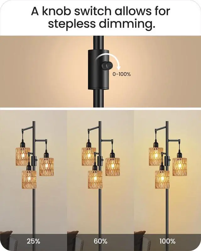 Stepless Dimming: This floor lamp allows for easy adjusting of brightness, ranging from 10% to 100%, with just a twist of its knob. Whether you need a super bright light for work or soft light for reading and relaxing, this lamp is designed to meet your specific needs