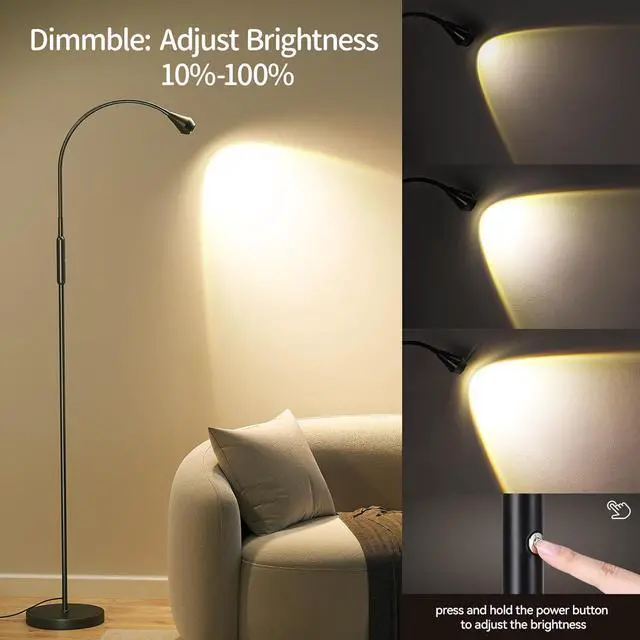 10%-100% Dimmable: This floor lamp for living room can be dimmed by long-pressing the power button to achieve a change in brightness from 10%-100% to match your different usage scenarios, allowing you to instantly set the ideal brightness for reading, working or relaxing. And the 4000K natural color temperature of this LED floor lamp is perfect for daily home use.
