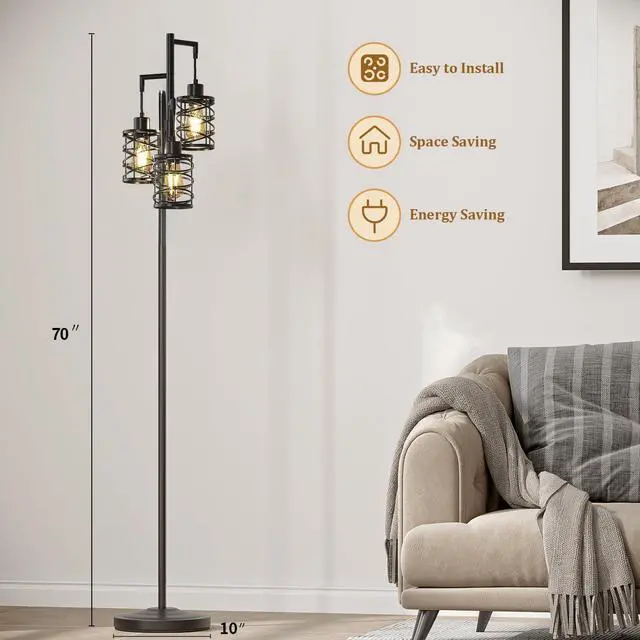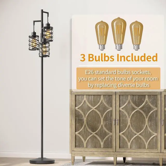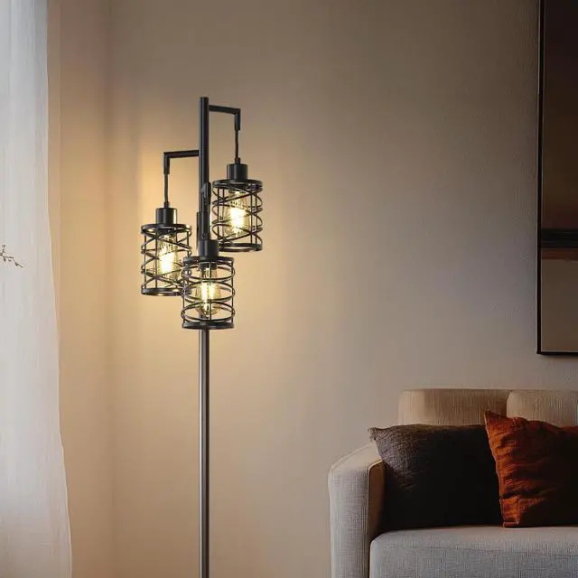 Unique Design Industrial Floor Lamp: Whether you' re looking to enhance your home decor or add some functional lighting solutions to your space, this tall floor lamp is sure to meet your individual needs. Equipped with three exquisite cage shades, it perfectly combines decorative style with lighting practicality. Suitable for living room, bedroom, study, office, dining room and more other scenes
